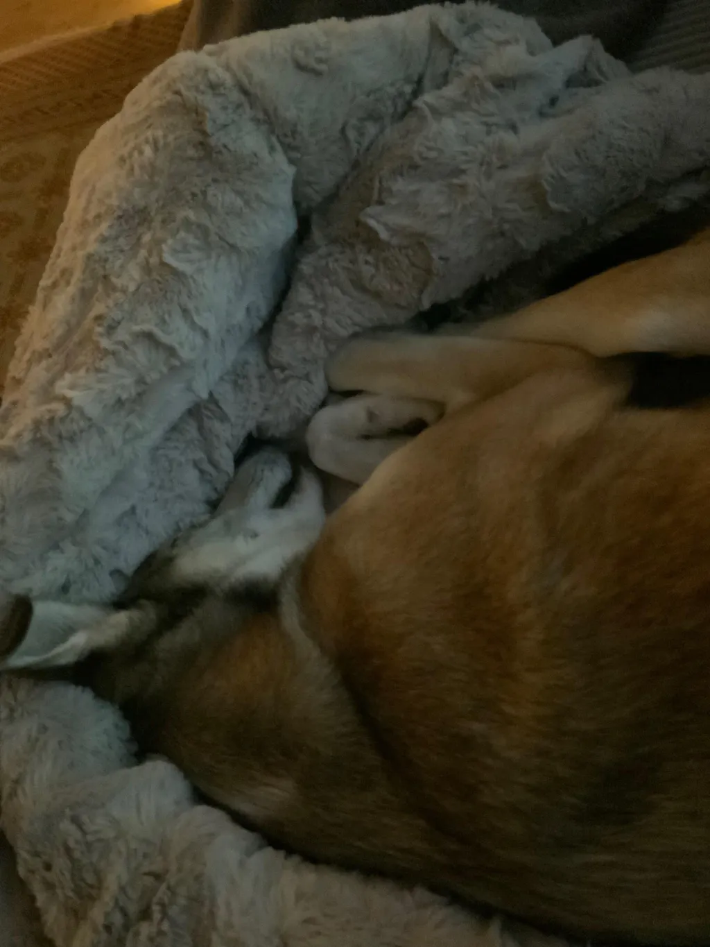Unser Model Scarlett ist ein Whippet und liegt hier in der Größe 65x90cm.