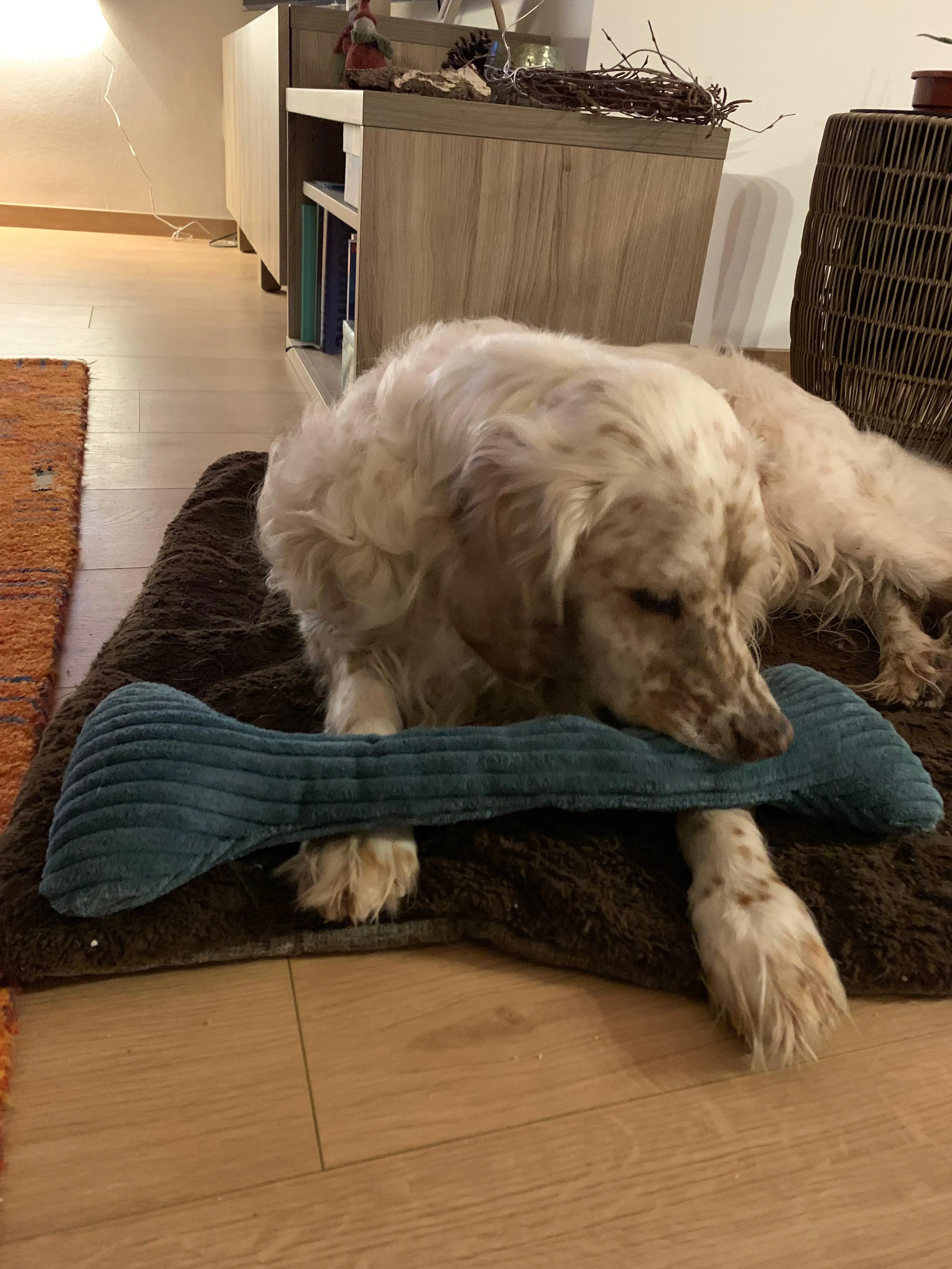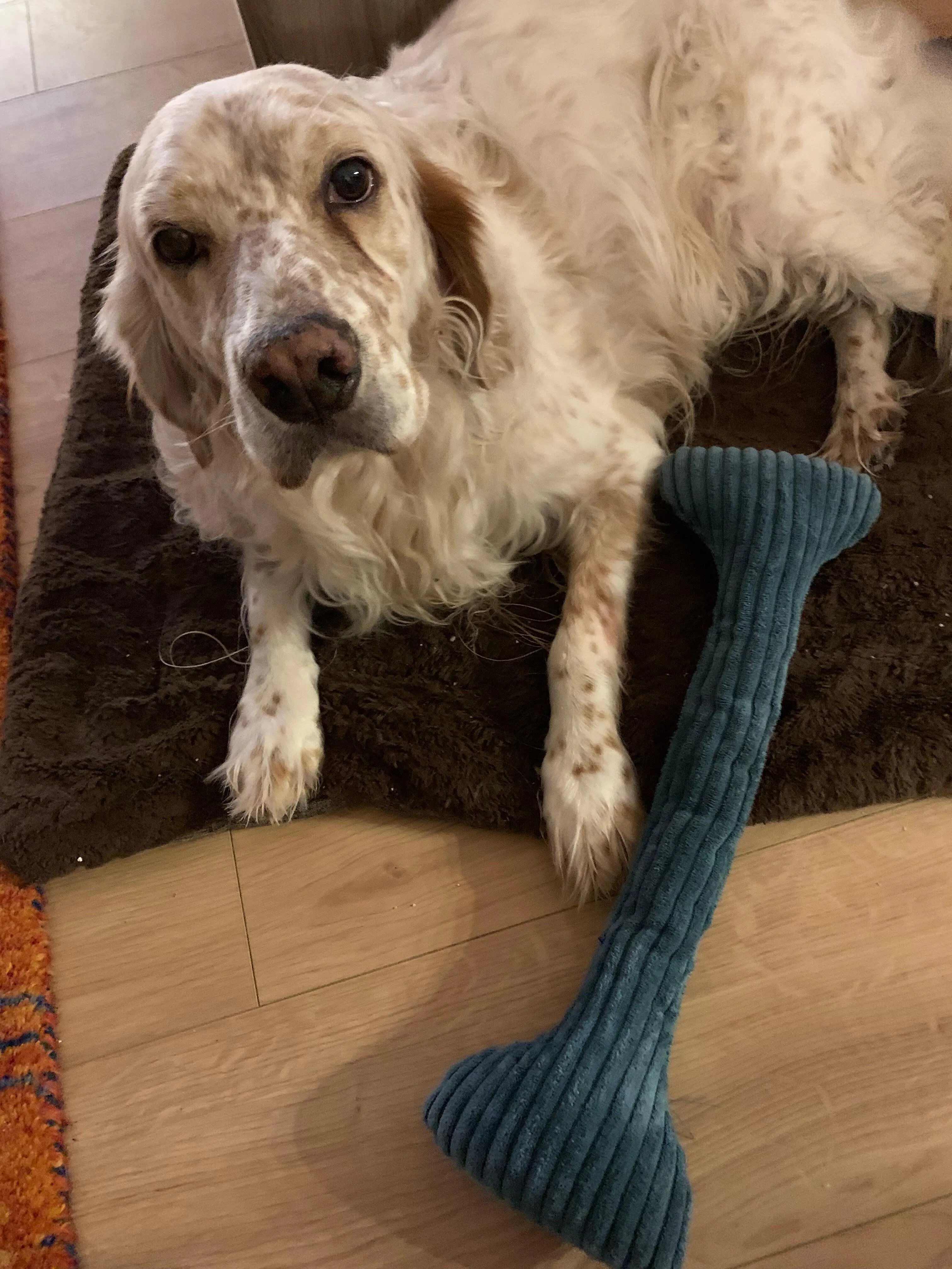 Spielsachen für Amie wurden bis jetzt immer in kürzester Zeit zerfetzt und entkernt aber der Schüttelknochen ist so gut dass er immernoch heile ist er wird jeden Tag bespielt gezerrt, gekuschelt und geschüttelt .