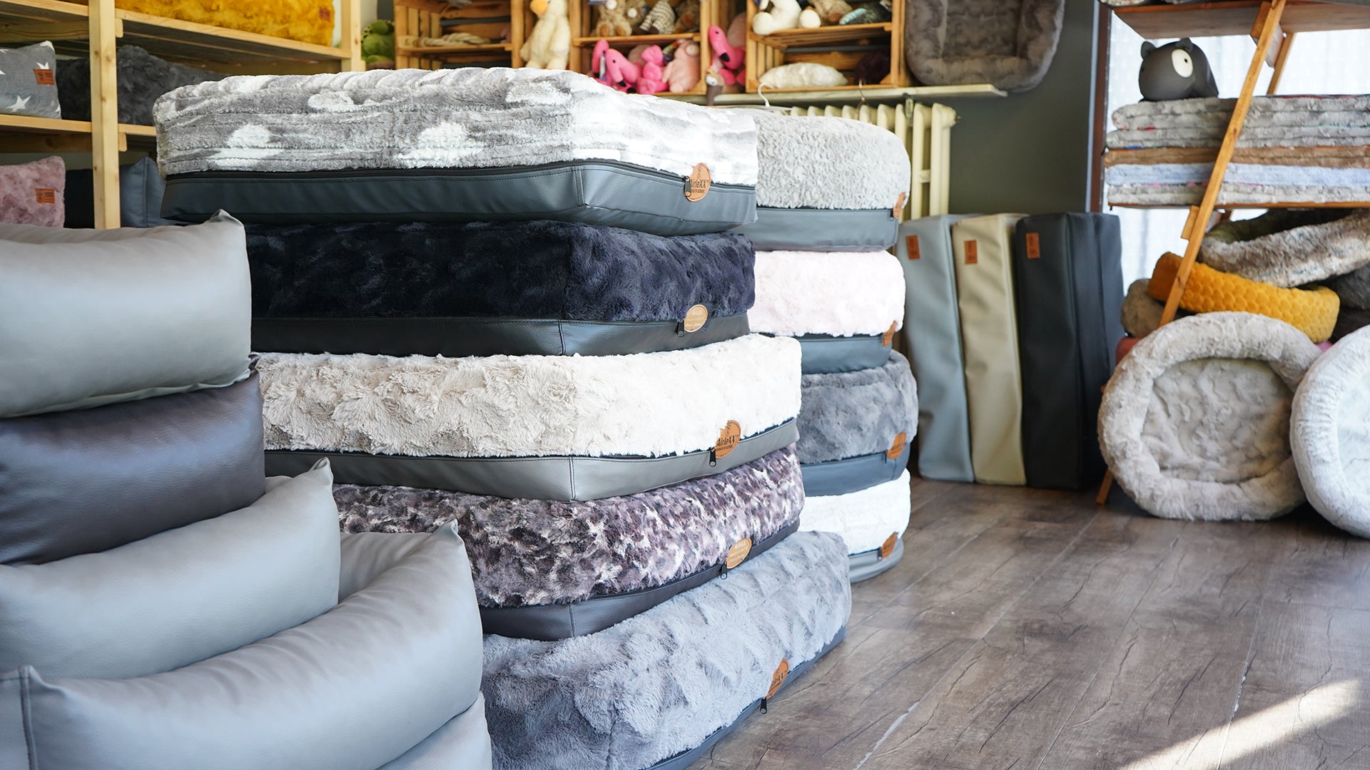 Hier könnt ihr alles wahrhaftig anfassen und ausprobieren. Wir nehmen uns Zeit für dich und deine Fellnase, euch euren Ansprüche und Vorlieben entsprechend zu beraten. Wir sind erst zufrieden, wenn ihr es seid. Ihr findet hier unsere komplette Pallette an Heimtierdecken, Hundebetten, sowie viele Kuscheldecken für Frauchen & Herrchen. Außerdem führen wir ein ausgewähltes Sortiment an Halsbändern, Leinen und verschiedem Zubehör.