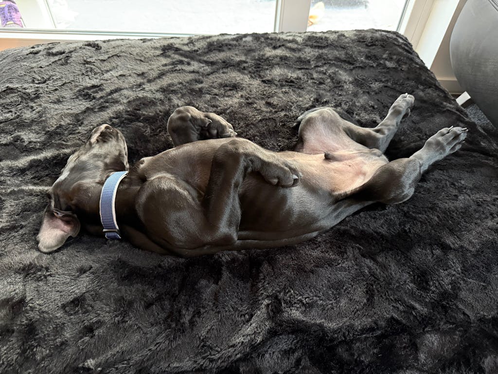 Unser Welpe liebt sein Hundebett, was direkt vor unserem Sofa liegt. Er liegt total gerne in seinem Bett und wir sitzen jetzt total oft mit ihm auf dem Hundebett, weil es so bequem
