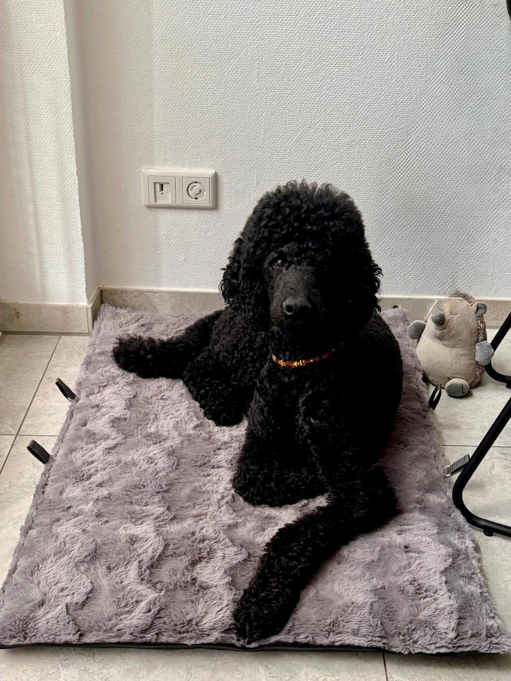 Tolles tragbares Hundebett, schön verarbeitet. Piet-Otto liebt es 🩷