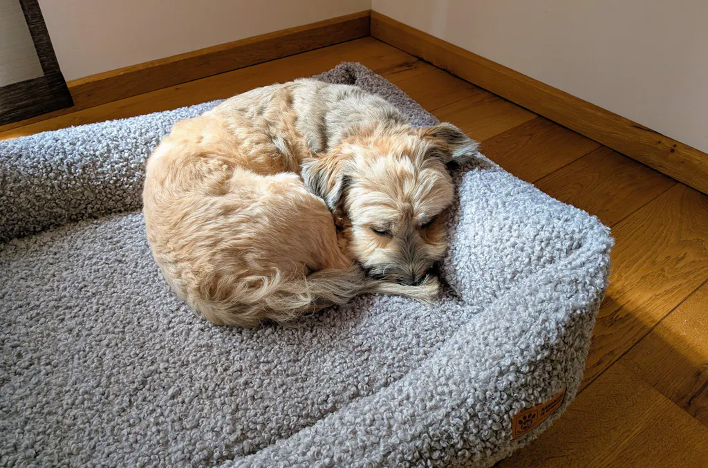 Wir waren im Laden vor Ort und begeistert von der tollen Auswahl, den super Designs und vor allen von der extrem freundlichen und kompetenten Beratung, ich hätte sonst für meinen Cavalier ein zu kleines Bett gekauft. Die Textur „Teddy“ ist wunderschön und mein Hund liebt es, in allen möglichen Positionen darauf zu liegen.